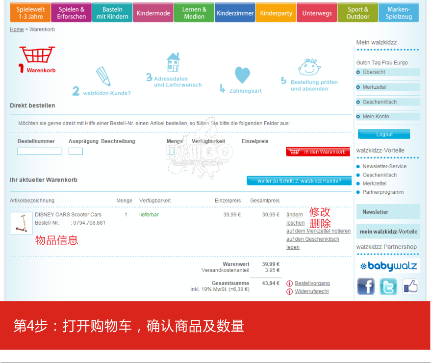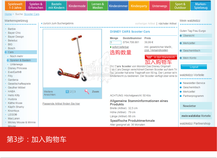 德国walzkidzz是主营婴幼儿生活用品的一家网商,主要经营婴幼儿玩具、学习用品、开发智力的探索玩具和手工制作、儿童家具、儿童服饰等,同时安全座椅和手推车也可以在这里淘到,经常会有打折商品,遇到打折时候下单非常划算。