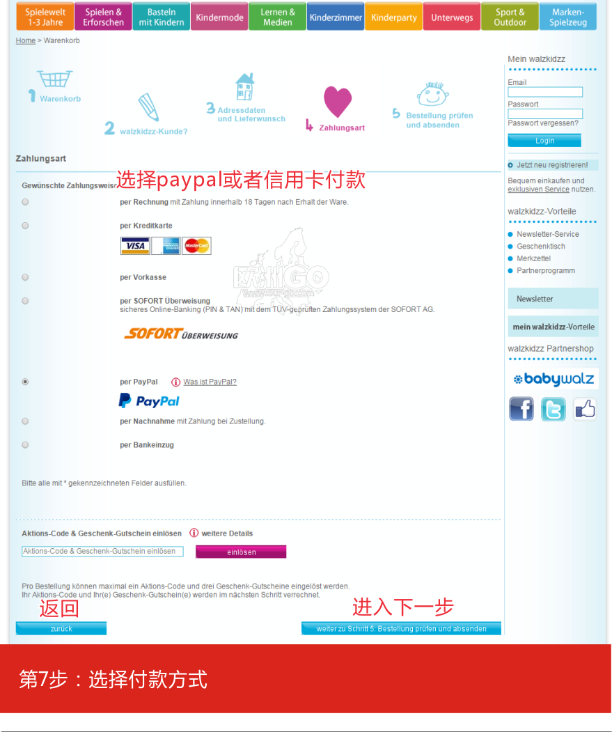 支付方式:信用卡和paypal